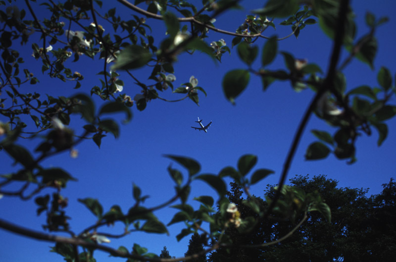贅沢なことに雲一つない青空だと、撮っていても面白くない。ふと木の下から見ると枝の間から面白い光景が見えてきた。